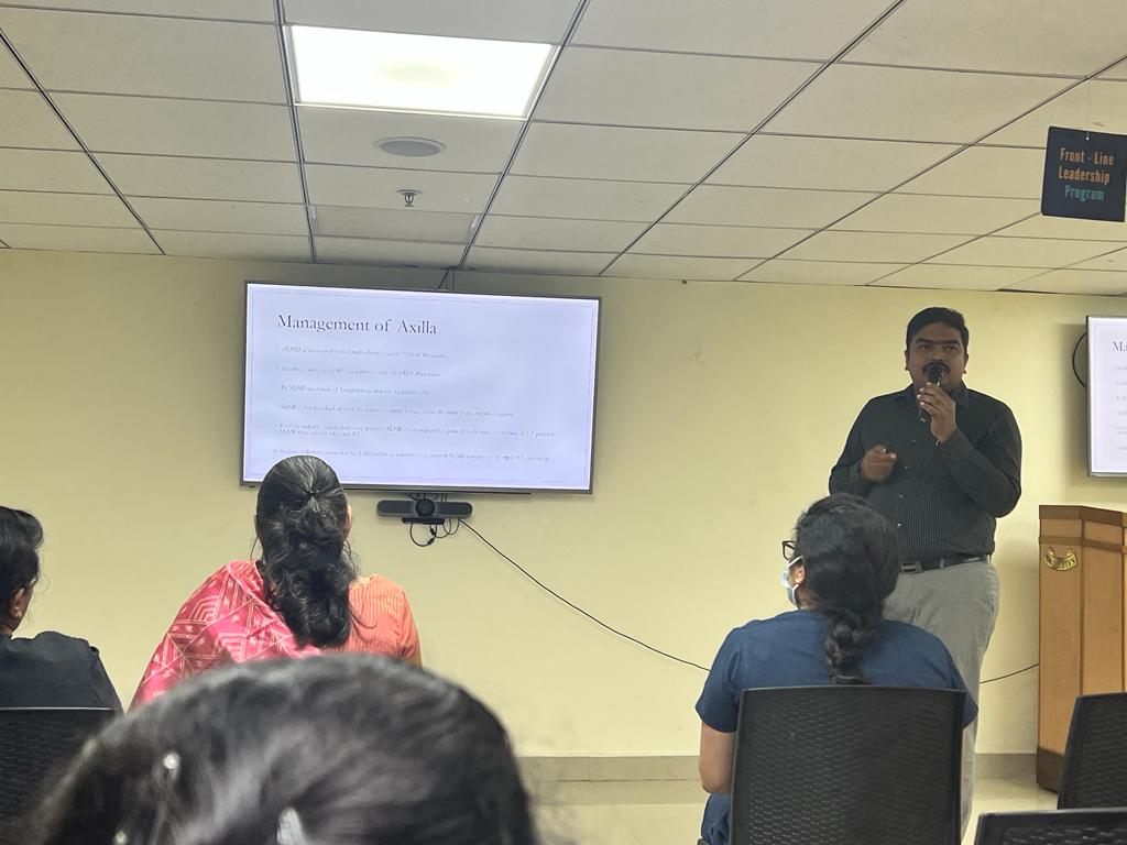 Breast cancer awareness talk given to general public on the occasion breast cancer awareness month by Dr. Manikandan on 07/10/22. Talk was about how to identify breast cancer and seek help.