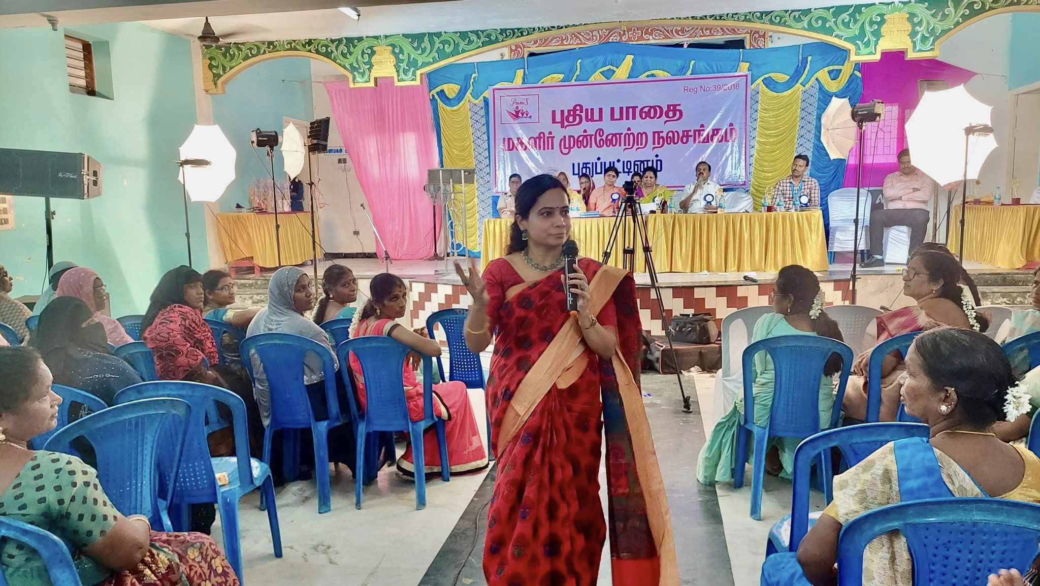 Dr. Banu Priya from Kalpavriksham Trust addressed an audience of 900 women at the "புதிய பாதை மகளிர் முன்னேற்ற நலசங்கம்," delivering an insightful and impactful speech on cancer awareness and the importance of HPV vaccination. Her talk focused on educating the women about the risks of cervical cancer, the benefits of early detection, and the life-saving potential of the HPV vaccine. The session aimed to empower women with knowledge and preventive measures to safeguard their health, contributing to a healthier and more informed community.