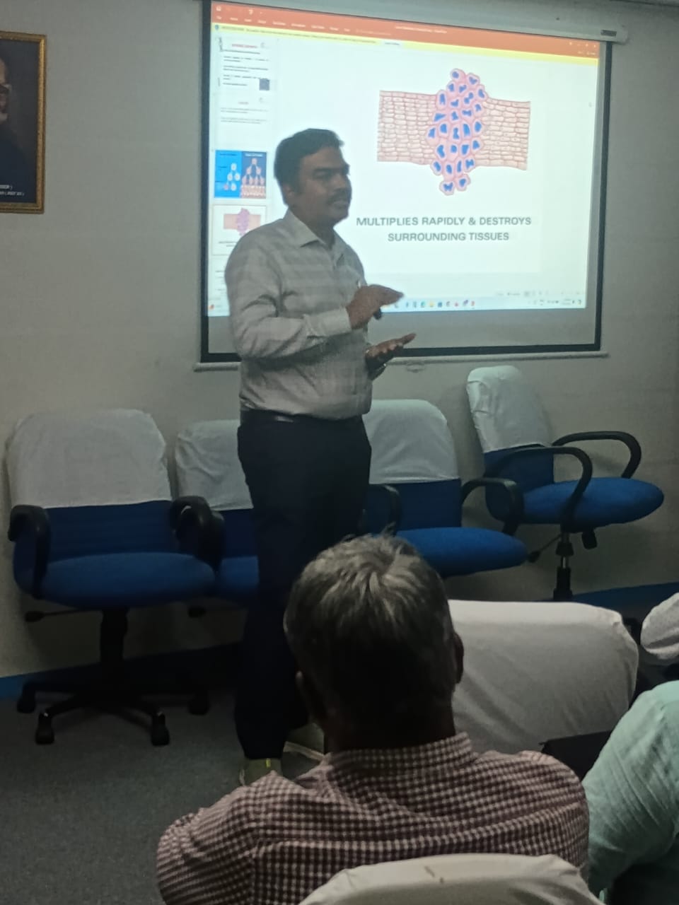 Kalpavriksham Trust, in collaboration with Privaram Cancer and Research Institute, organized an impactful cancer awareness program on August 23, 2024. The session was led by Dr. Manikandan and attended by 25 staff members of New India Assurance Company.The program aimed to educate participants on the importance of early detection, prevention strategies, and the latest advancements in cancer treatment.