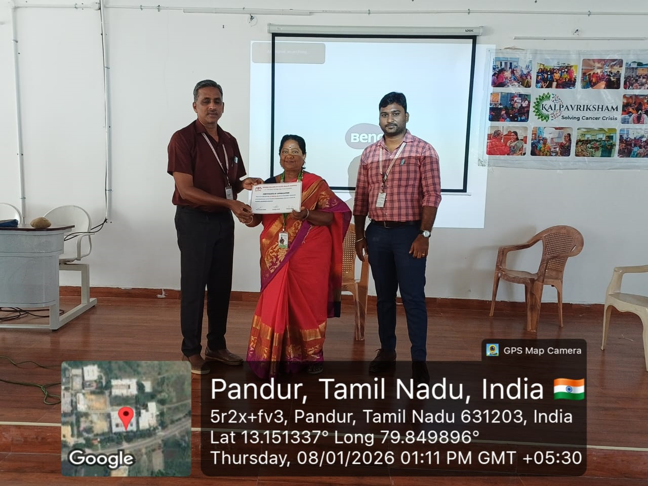 Kalpavriksham Trust, in collaboration with Privaram Cancer Hospital, conducted a Cancer Awareness Talk at Indira Education – College of Allied Health Sciences, Pandur, Thiruvallur, reaching 125 students and staff members. The session focused on early detection and women’s health, highlighting the importance of mammograms, Pap smear tests, and the HPV vaccine.Participants were guided through key topics including cancer risk factors, screening procedures, and the benefits of timely diagnosis. The speaker emphasized the role of preventive screenings in reducing cancer risks and encouraged attendees to adopt proactive health practices.The session aimed to create a lasting impact by fostering awareness, promoting early detection, and empowering the community to make informed decisions for better health and well-being.