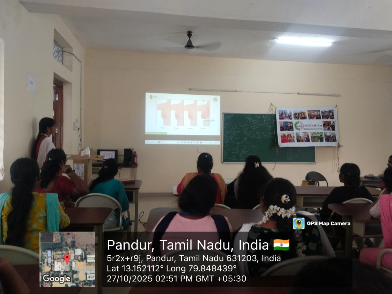 Kalpavriksham Trust, in collaboration with Privaram Cancer Hospital, organized an impactful Cancer Awareness Talk at Indira Medical College, Pandur – Thiruvallur, which was attended by approximately 120 students.The session focused on early detection and cancer prevention, with special emphasis on women’s health. It highlighted the importance of mammogram screenings, Pap smear tests, and the HPV vaccine in preventing breast and cervical cancers.The expert speaker discussed key topics such as cancer risk factors, screening procedures, and the benefits of timely detection, motivating attendees to adopt proactive health measures. Participants gained valuable insights into how preventive screenings can significantly reduce cancer risks and were encouraged to make informed health decisions.The initiative aimed to create a lasting impact by promoting awareness, encouraging early diagnosis, and fostering a culture of preventive healthcare within the community.