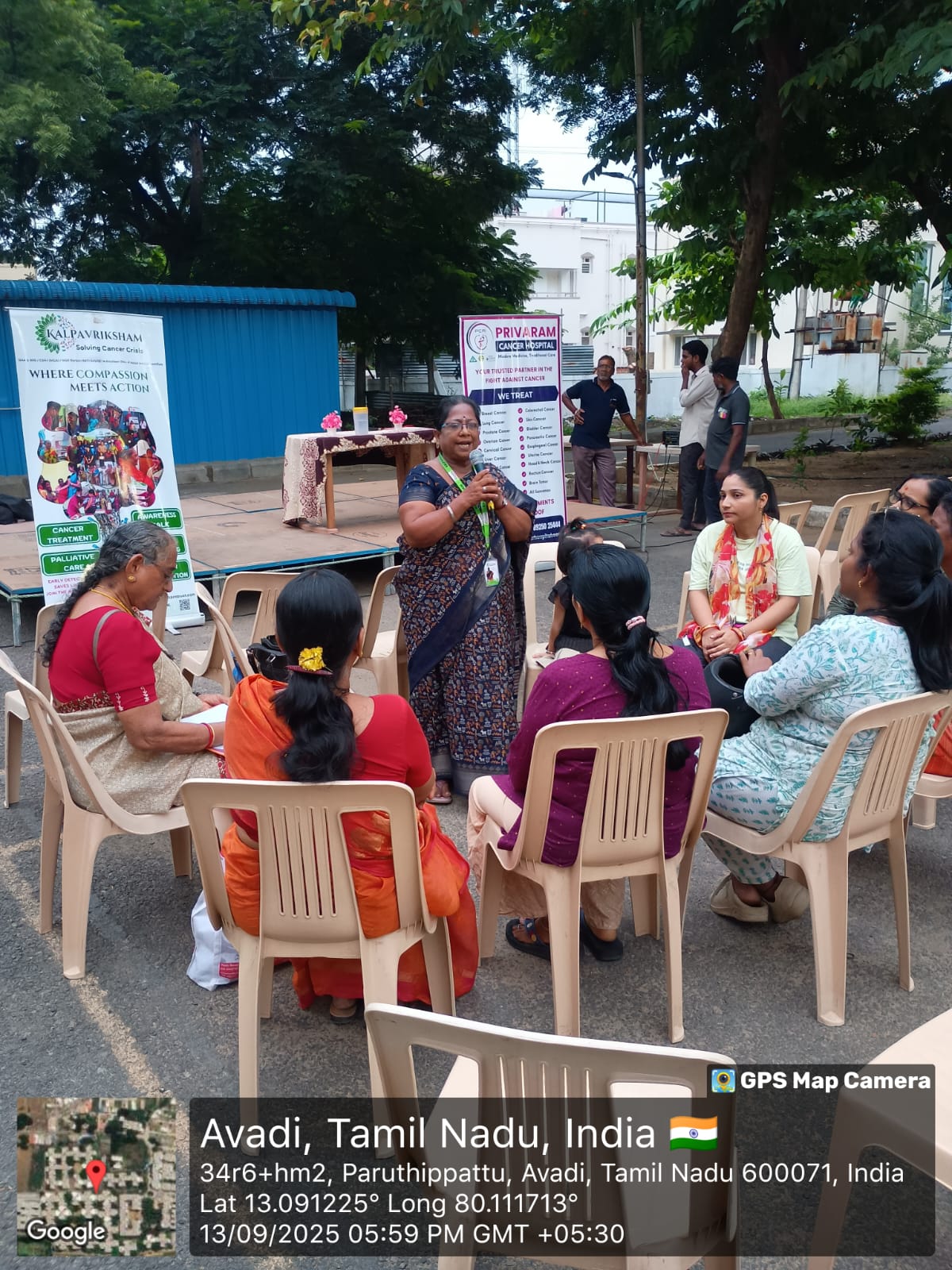 Cancer Awareness Talk at Kendriya Vihar phase 2, Paruthipattu, Avadi on 13-09-2025