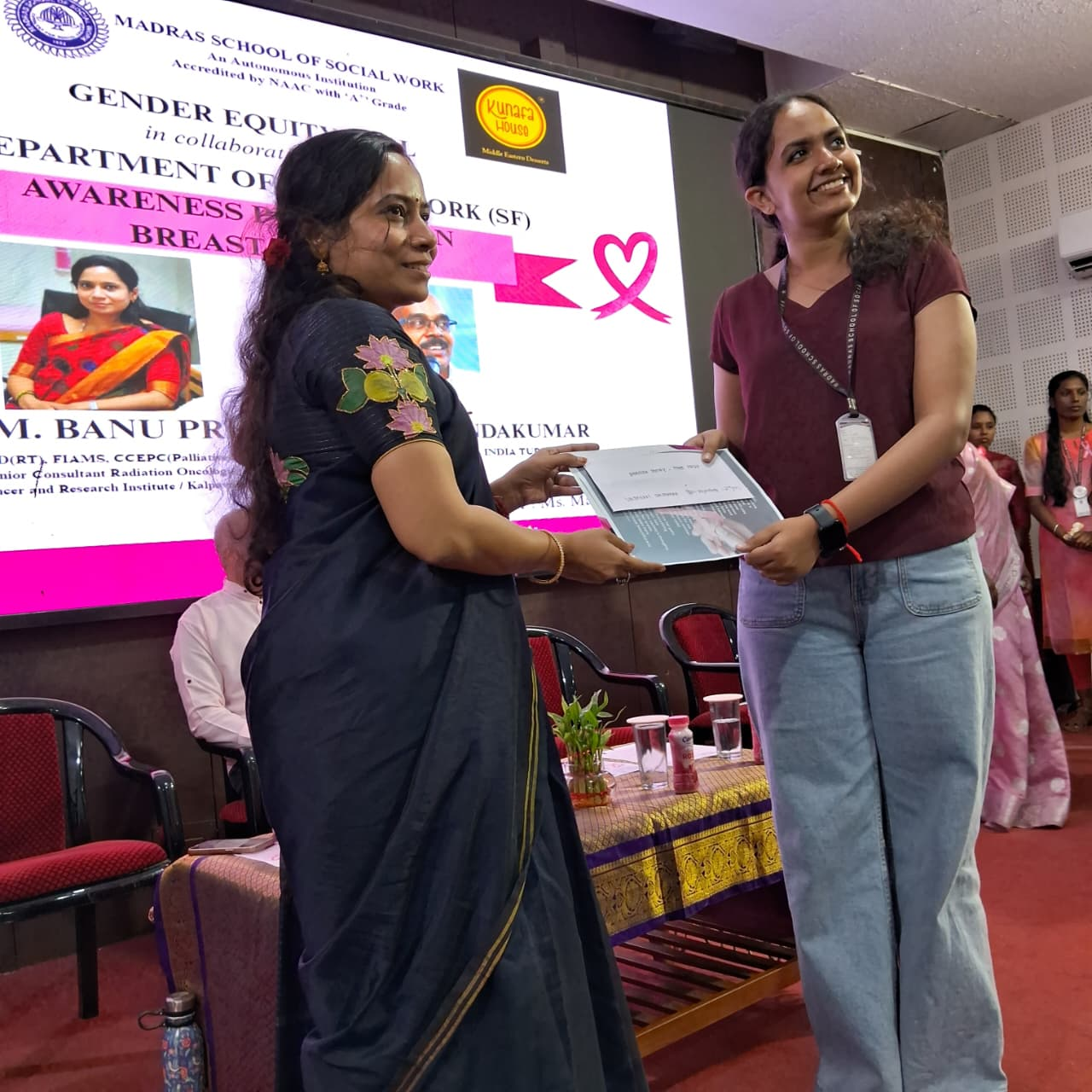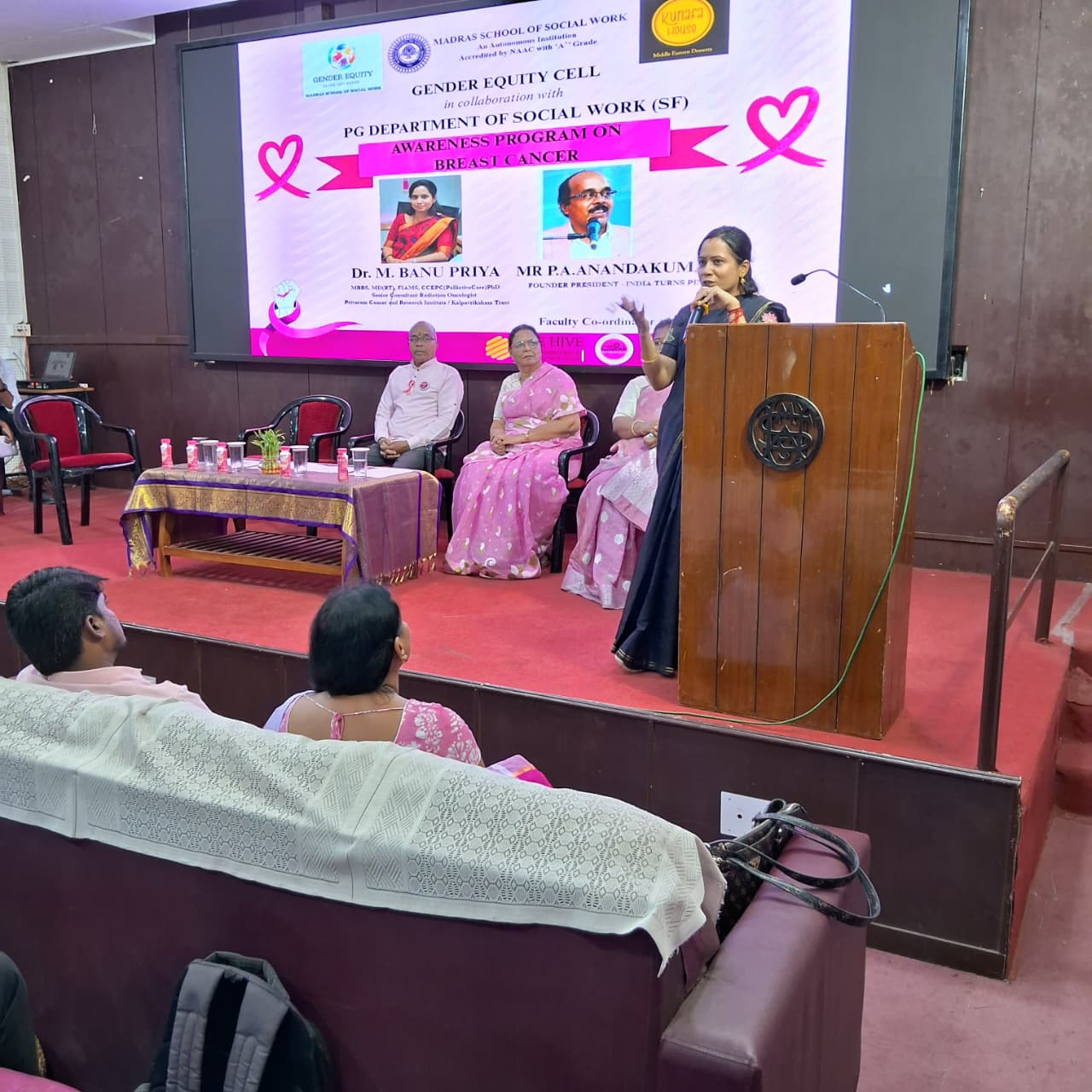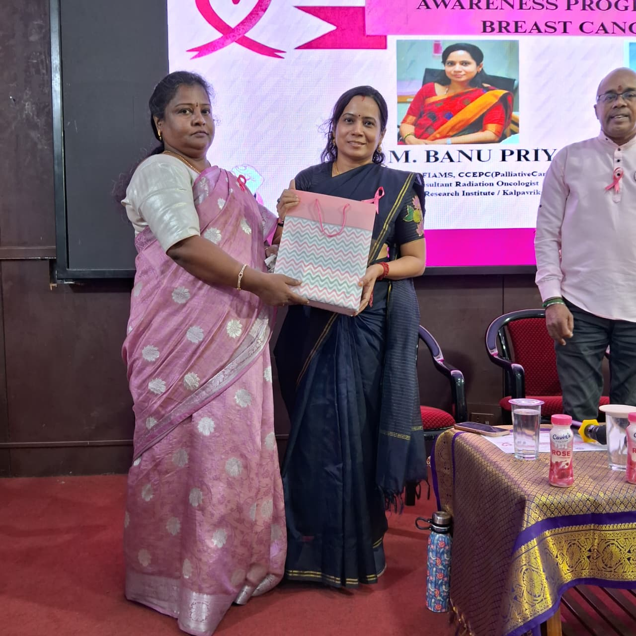On 26th September 2025, a Breast Cancer Awareness Talk was organized at Madras School of Social Work (MSSW). The session was led by Dr. M. Banu Priya, Senior Consultant Radiation Oncologist, Privaram Cancer Hospital / Kalpavriksham Trust.The talk focused on breast cancer prevention, early detection, and the importance of awareness in saving lives. A total of 130 beneficiaries actively participated and gained valuable insights to promote early health practices and community awareness.