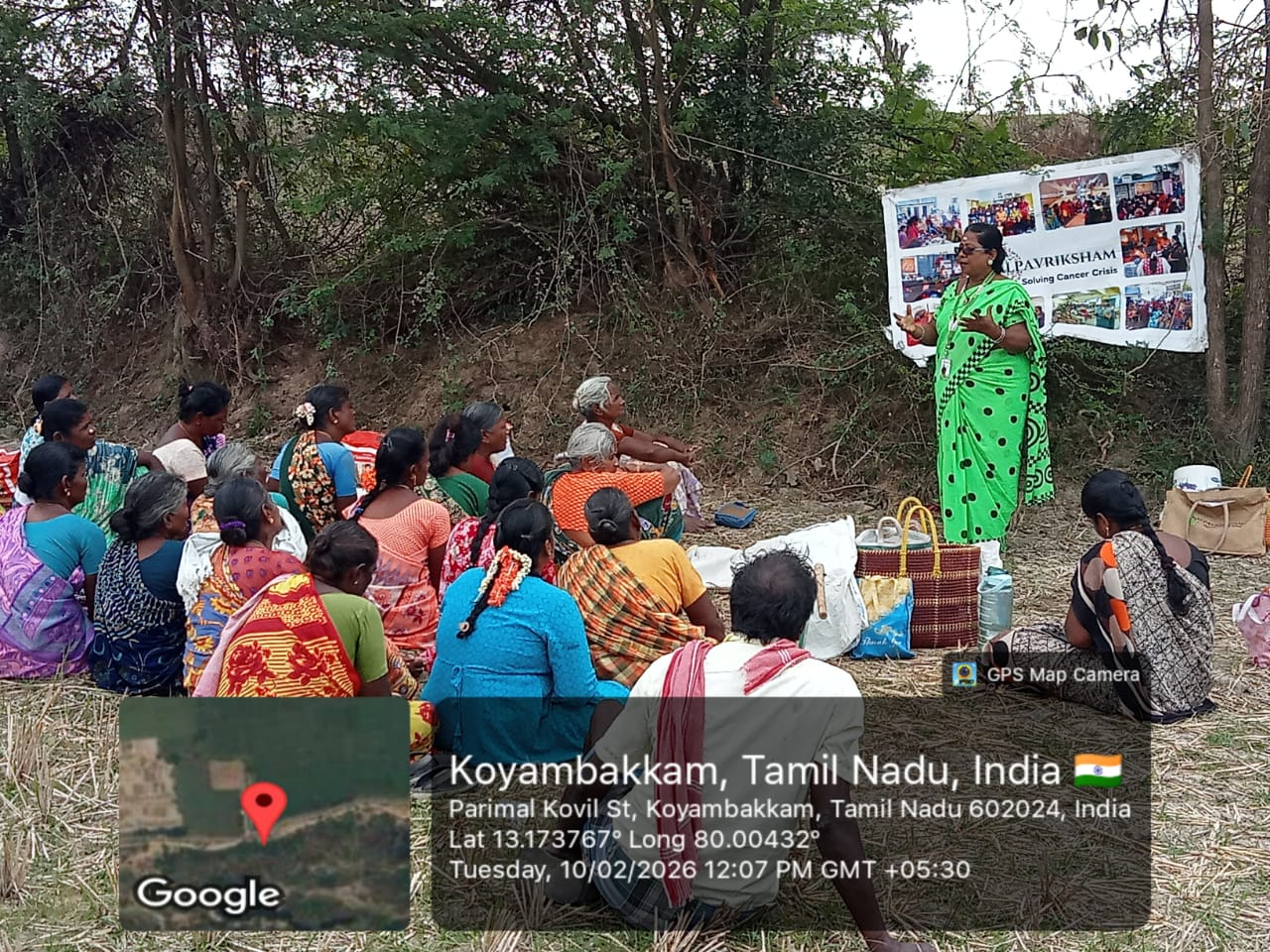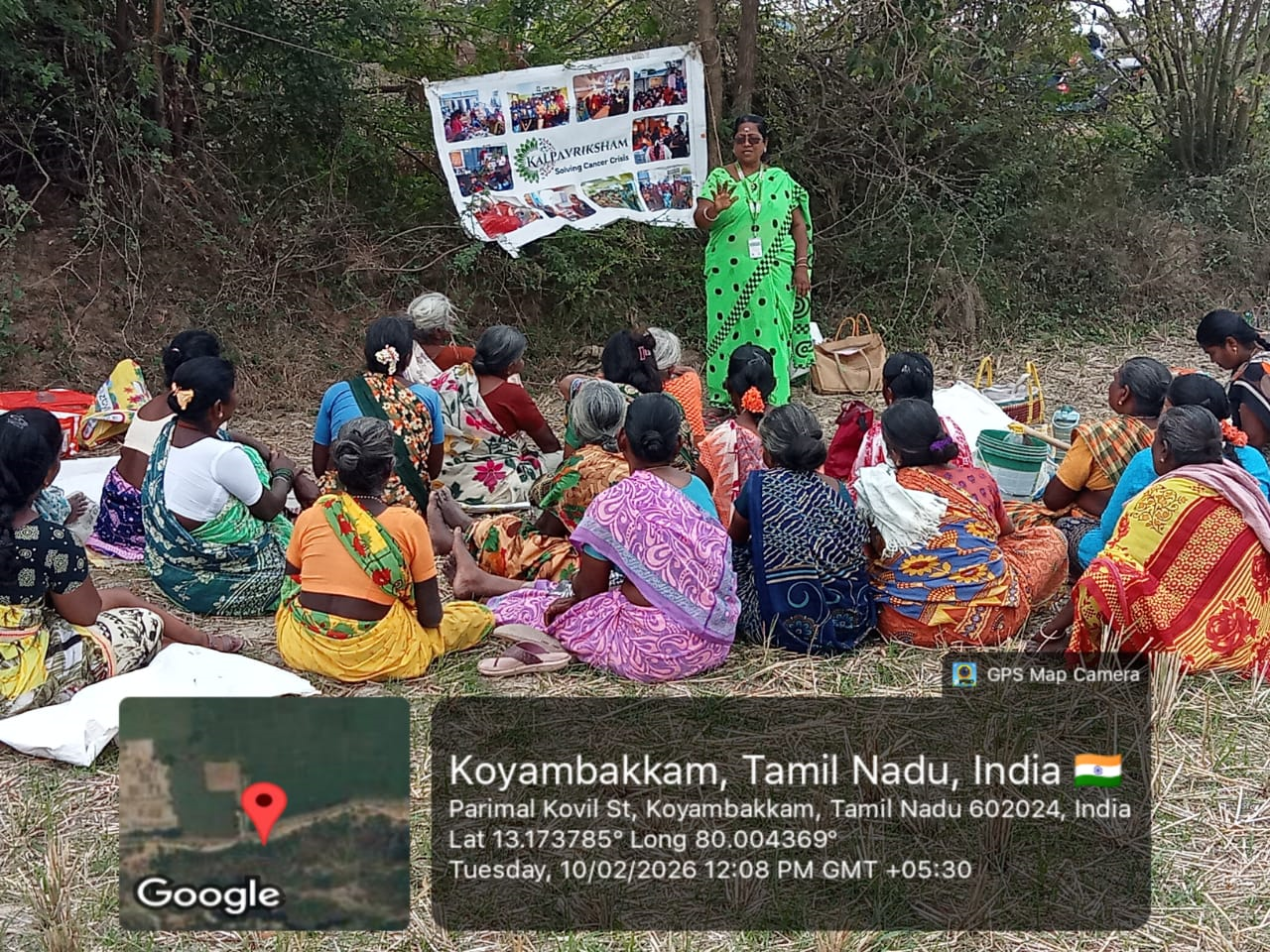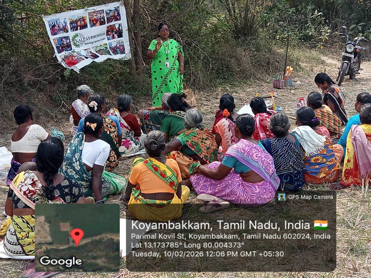 Kalpavriksham Trust, in collaboration with Privaram Cancer Hospital, organized a Cancer Awareness Talk at Sivanvoyal, Koyambakkam Village, Thiruvallur.The session educated 31 participants on the importance of mammogram and Pap smear screenings, emphasizing their critical role in early detection and prevention of breast and cervical cancers. The speaker provided clear insights into the procedures and benefits of these tests, motivating attendees to adopt proactive health practices.