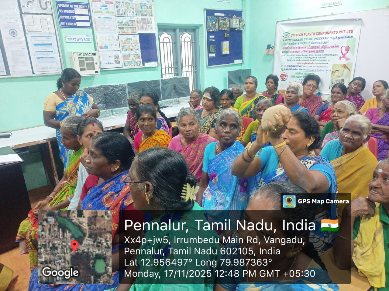 Kalpavriksham Trust, in collaboration with Privaram Cancer Hospital, conducted a Cancer Awareness Talk at Uratchi Mandra Aluvalaga Valagam-Vangadu, Sriperumbudur, Kancheepuram on 17th November 2025.The session educated around 58 participants on the importance of mammogram and Pap smear screenings, emphasizing their crucial role in the early detection and prevention of breast and cervical cancers. The speaker provided clear and practical insights into the procedures and benefits of these tests, motivating participants to adopt proactive health practices. This initiative aimed to promote preventive healthcare, empowering the community to prioritise their health and well-being through timely screenings, awareness, and informed choices.