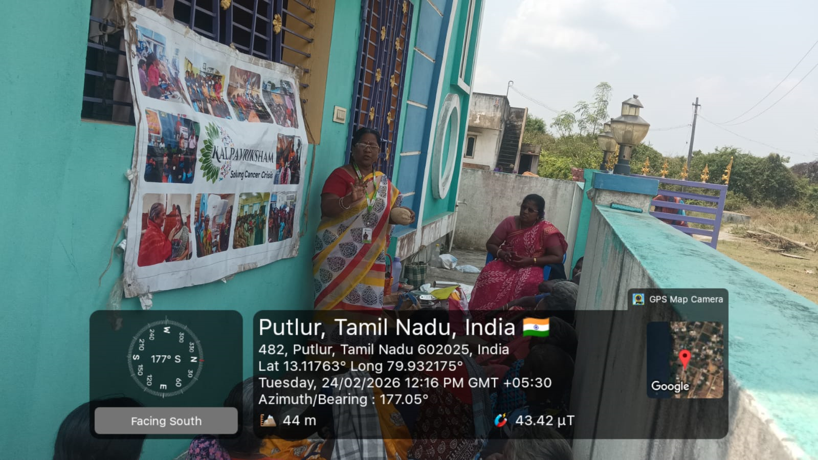 Kalpavriksham Trust, in collaboration with Privaram Cancer Hospital, organized a Cancer Awareness Talk at Water Tank - Bajanai Koil Street, Putlur, Thiruvallur. The session educated 17 participants on the importance of mammogram and Pap smear screenings, emphasizing their critical role in early detection and prevention of breast and cervical cancers. The speaker provided clear insights into the procedures and benefits of these tests, motivating attendees to adopt proactive health practices.