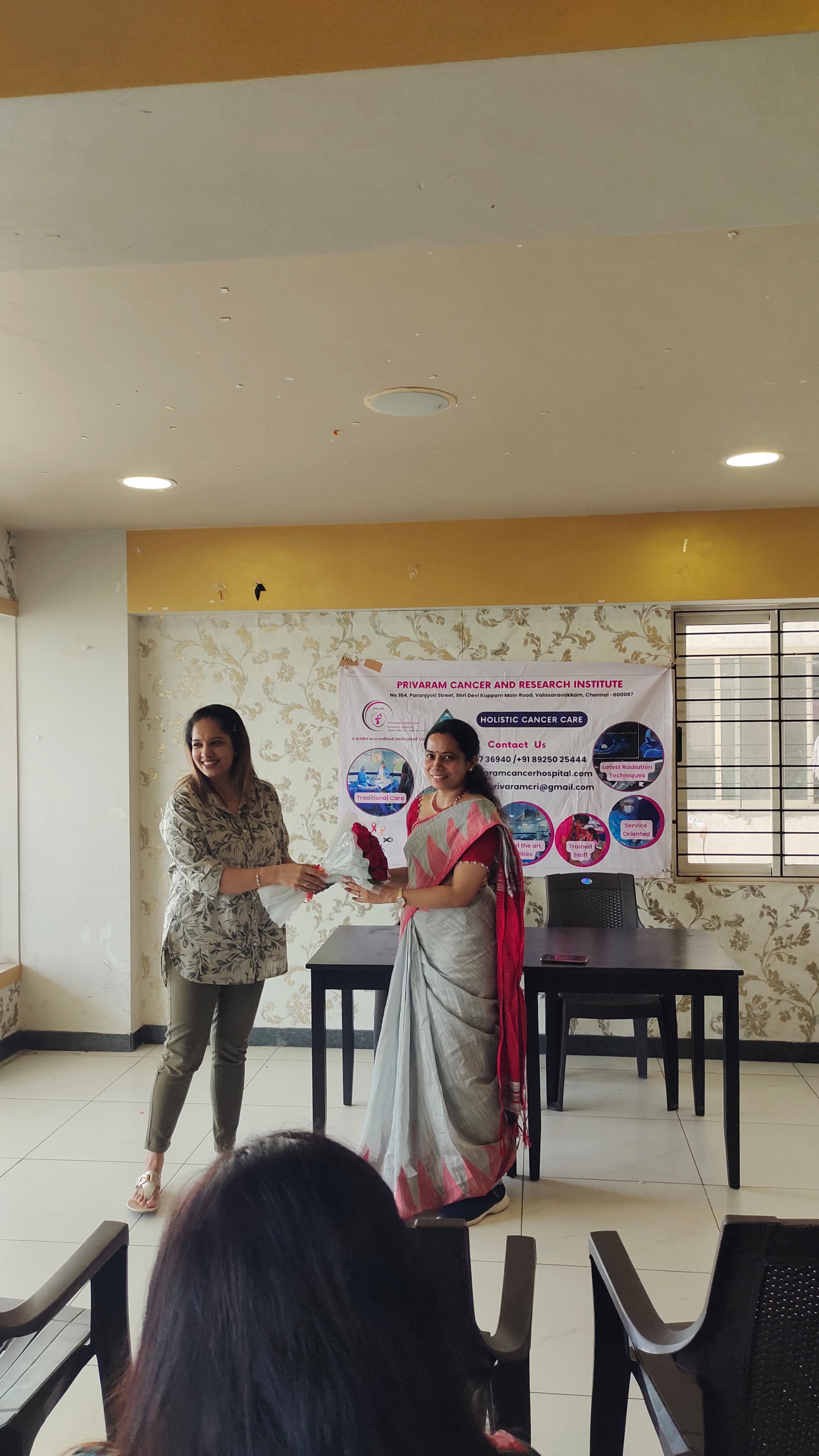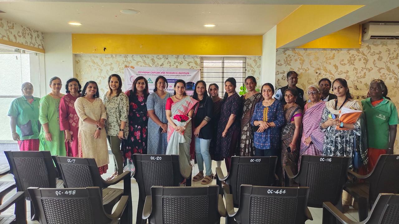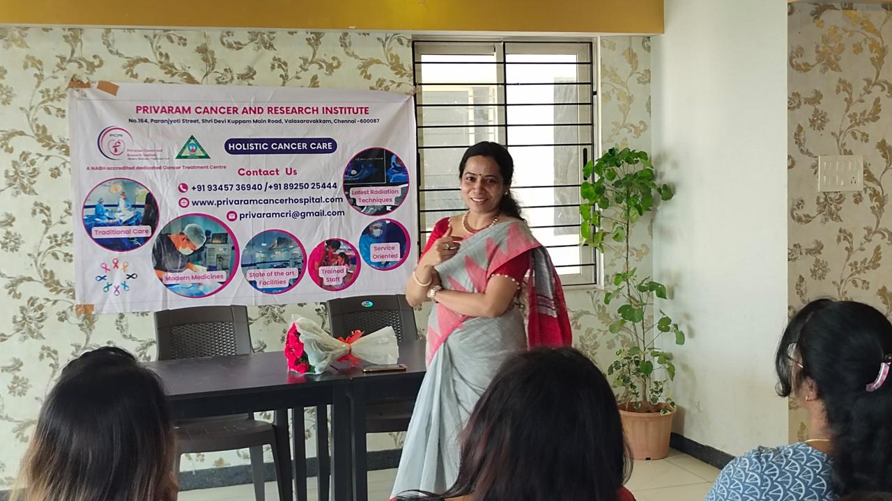Dr. M. Banu Priya, a distinguished Senior Consultant Radiation Oncologist and Founder of Kalpavriksham Trust, delivered an enlightening talk today at Osian Chlorophyl Apartments, Porur, Chennai. Focused on Breast Cancer Awareness, Cancer Vaccines, and Healthy Lifestyle Choices, her expertise shed light on crucial aspects of cancer prevention and management. The event was warmly received, fostering awareness and empowerment within the community.