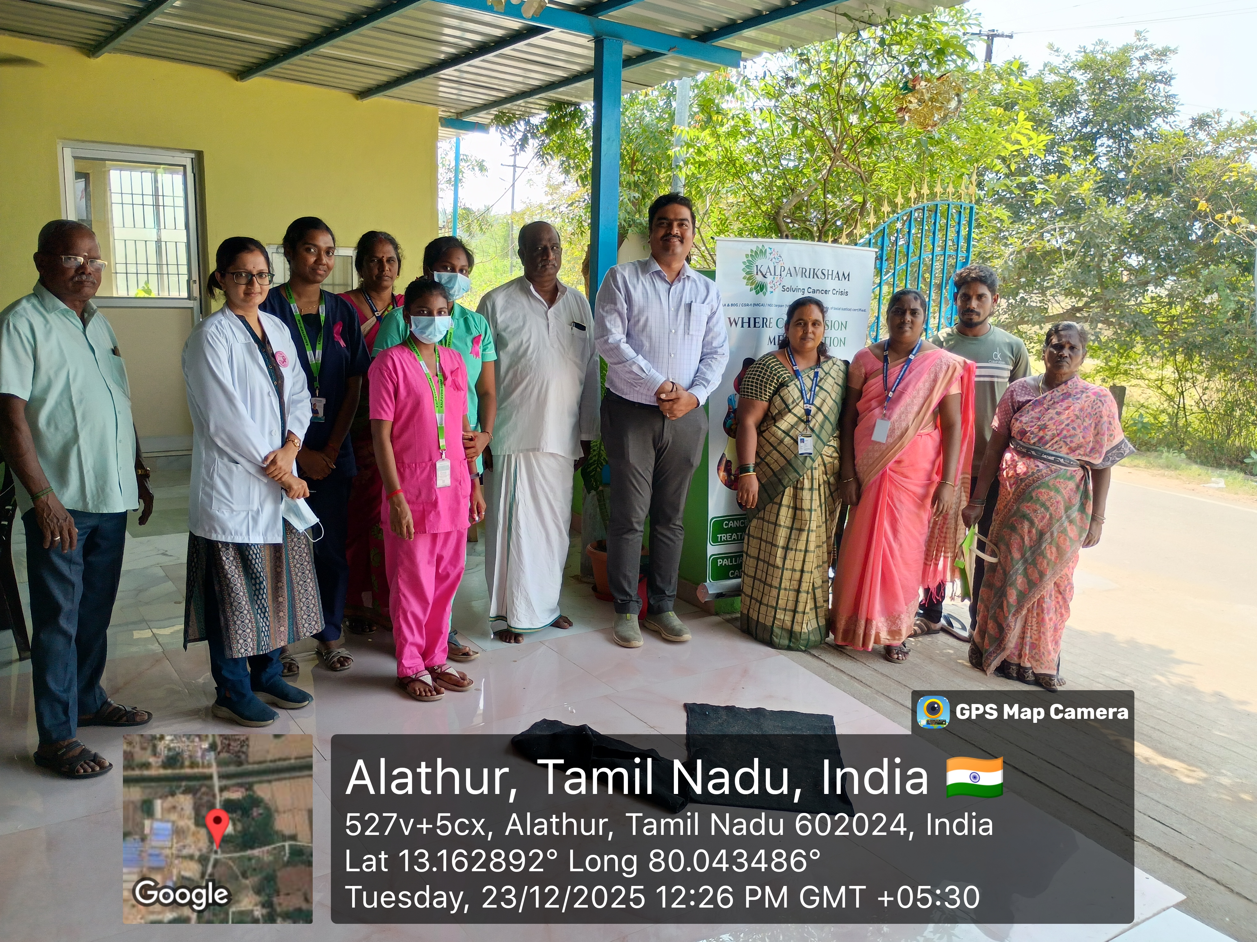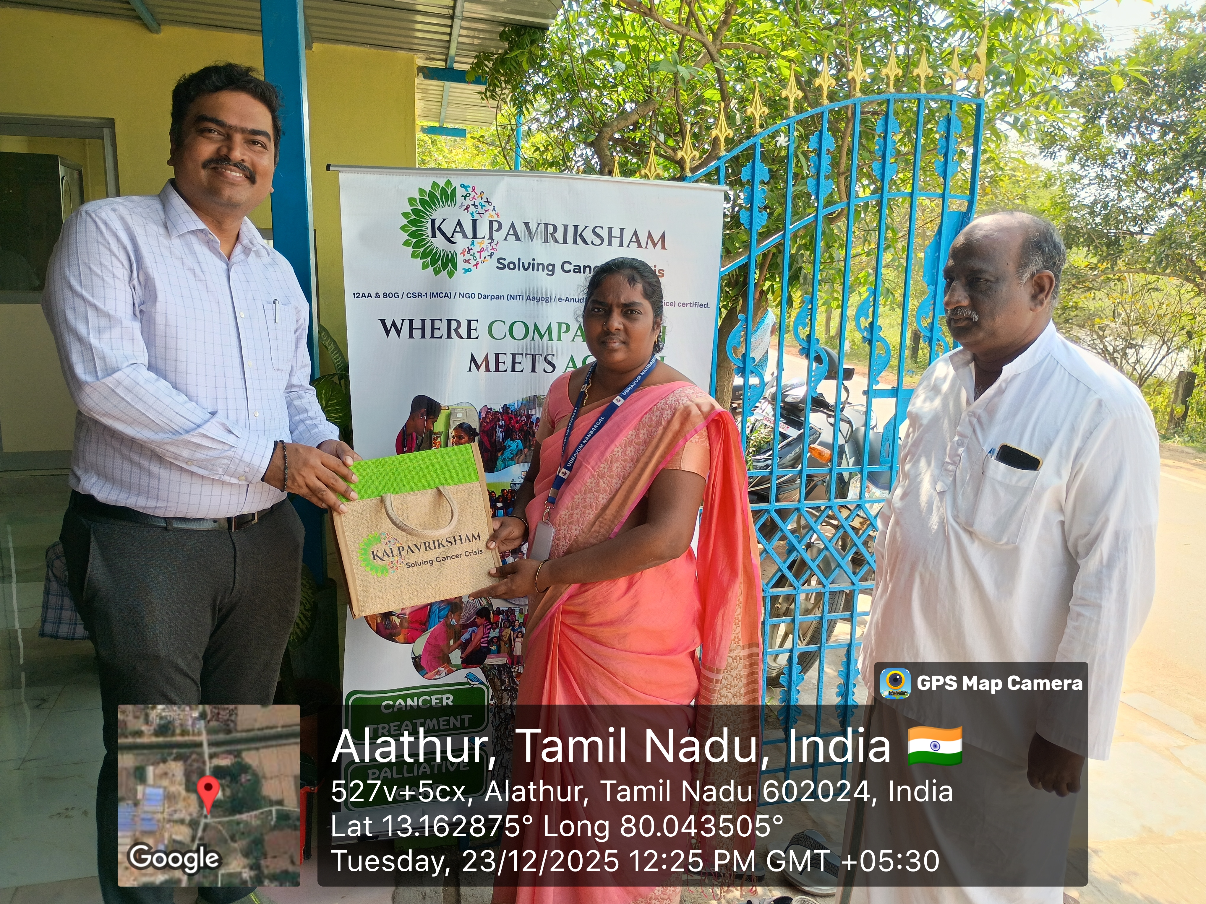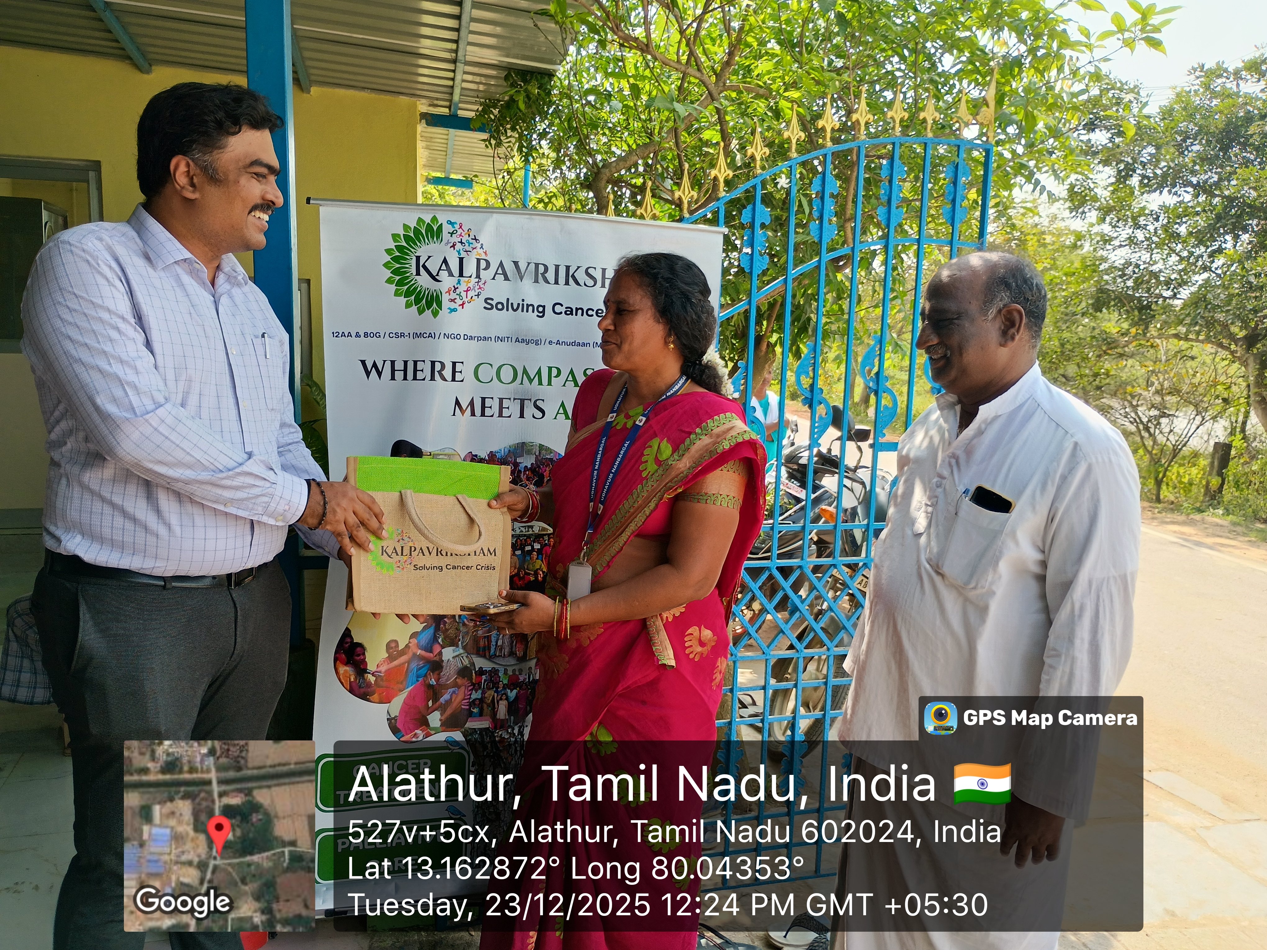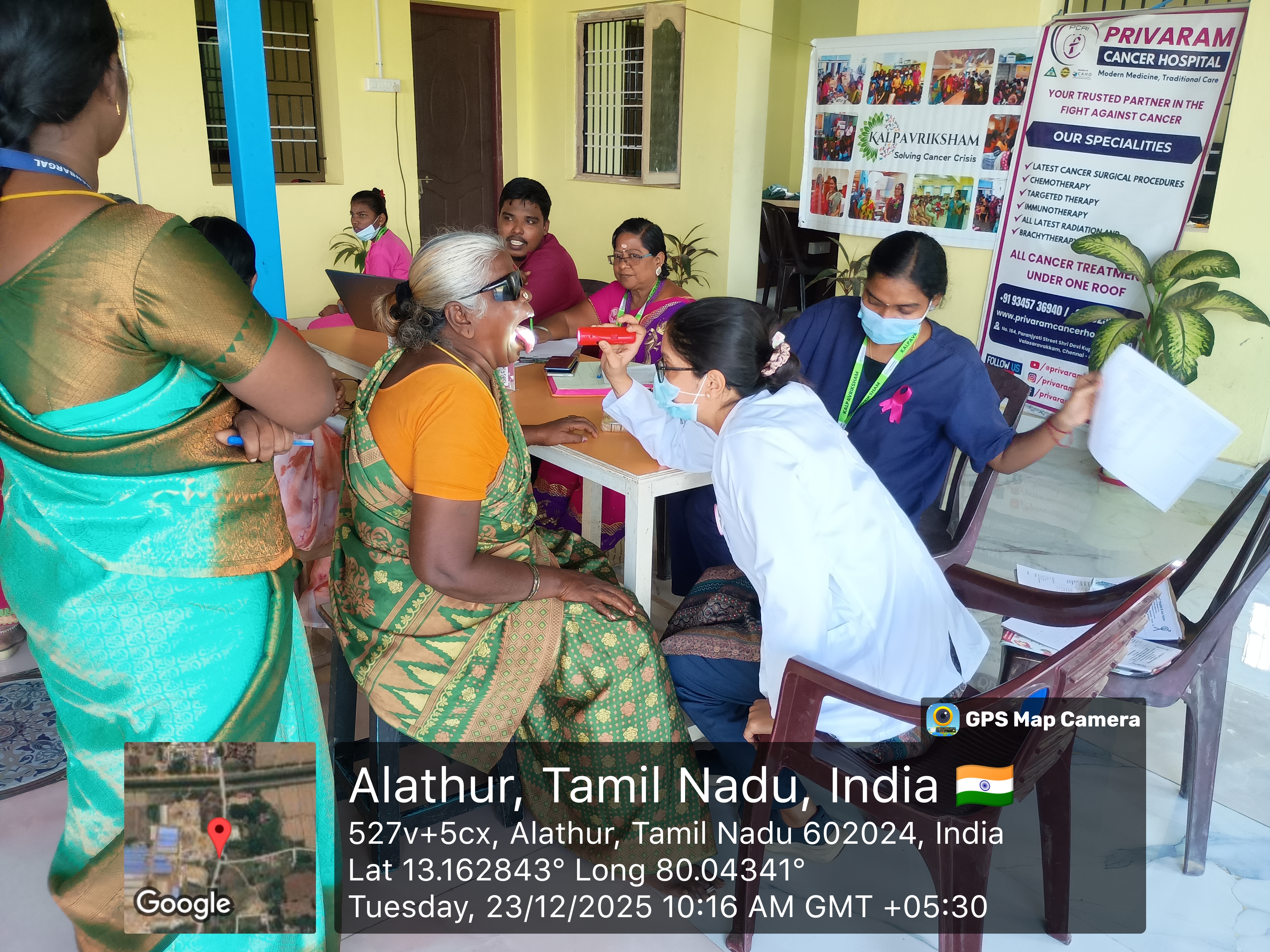 A Cancer Screening Camp was successfully conducted on 23rd December 2025 at Udhavum Nanbargal, Alathur Panchayat, Palavedu Post, Chennai, under Project Femicare+. Organized by Kalpavriksham Trust, in collaboration with Udhavum Nanbargal and Privaram Cancer Hospital, the camp focused on early detection and prevention through essential screening services.