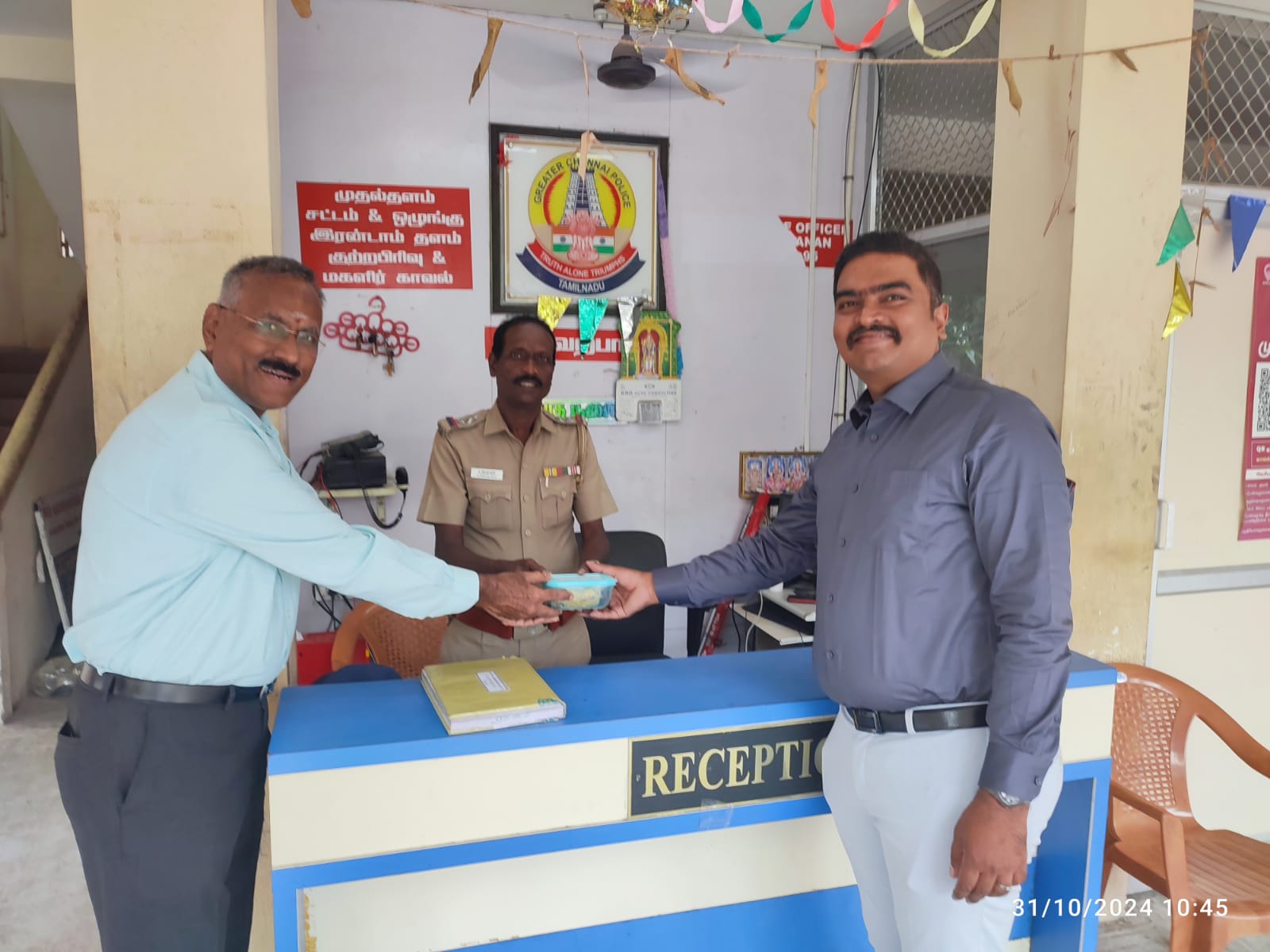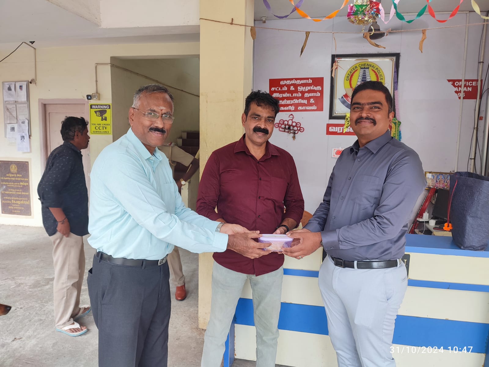 Kalpavriksham Trust, in collaboration with the Rotary Club of Vadapalani, organized a heartwarming Diwali sweets distribution event to honor 20 beneficiaries including police officers and essential workers (sweepers) who dedicated their time on Diwali to serve the community. Sweets were distributed at the R9 Police Station in Valasaravakkam, recognizing the commitment and personal sacrifice these workers made by working on a festival day. This gesture spread happiness and joy, expressing gratitude and appreciation for their invaluable service, allowing others to celebrate safely with their families.