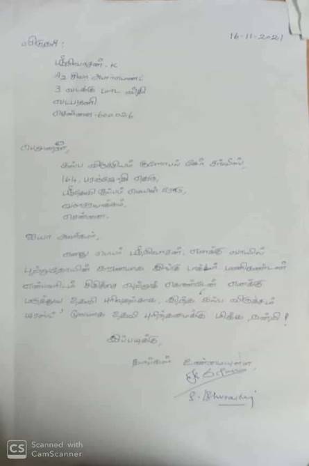 Towards Mr. Srinivas’s treatment expenses, he is suffering from oral cancer.