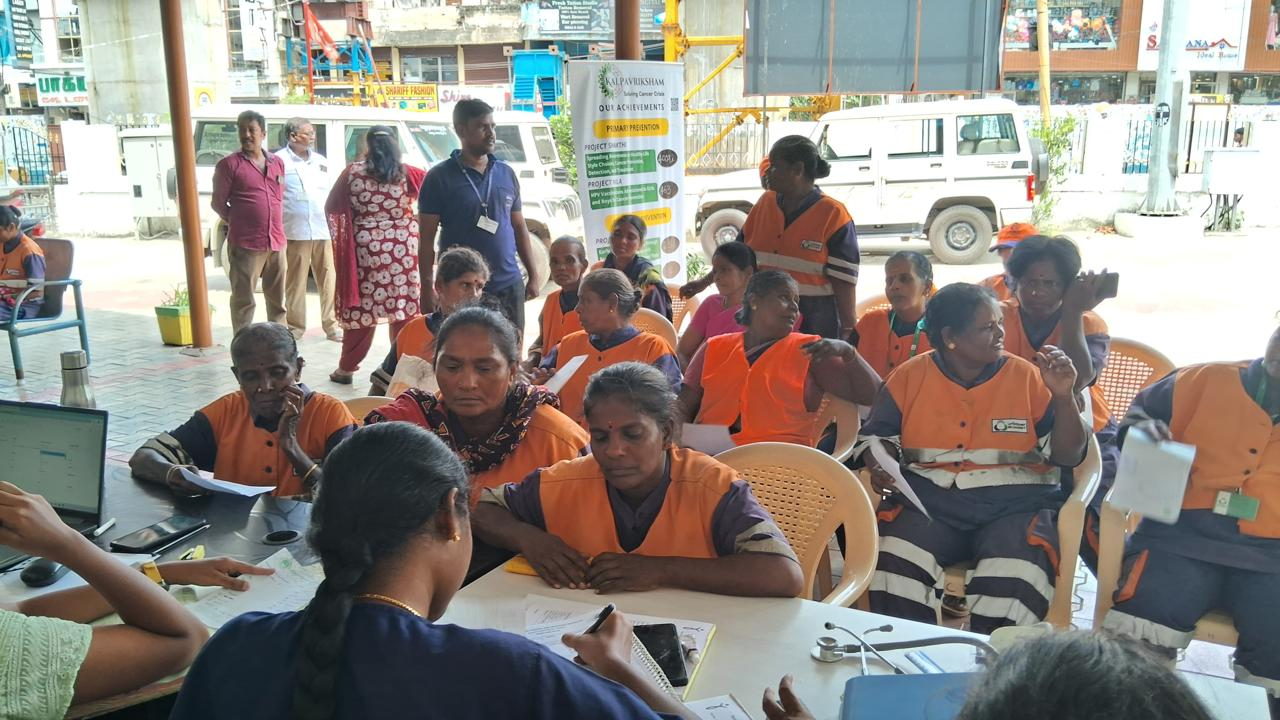 Kalpavriksham Trust, in collaboration with Privaram Cancer Hospital, successfully organized a cancer screening camp at Greater Chennai Corporation-Zonal XI Office, Valasaravakkam under the banner of Project Femicare+. This impactful initiative was made possible through the generous support of Mr. V. Raghavan, Retired Professor, IIT Delhi, in loving memory of his wife, Mrs. Nirupama Raghavan, a brilliant Indian astrophysicist who lost her life to breast cancer in 2007. Through his continued contributions, Mr. Raghavan transforms personal loss into purpose, bringing preventive healthcare and hope to countless lives. His gesture is a glowing tribute to Mrs. Nirupama Raghavan, whose light continues to guide others, even in her absence. We extend our heartfelt gratitude and salute their inspiring legacy. The camp delivered essential preventive healthcare services to the local community, benefiting 75 individuals. This included 50 mammogram screenings, 45 Pap smear tests and 02 HPV Vaccine, aimed at early detection and raising health awareness, particularly among women from vulnerable groups.This initiative underscores a sustained commitment to promoting accessible healthcare and empowering communities with timely diagnostic services that can truly make a life-saving difference.