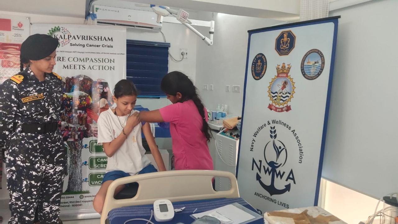 Kalpavriksham Trust, in collaboration with Privaram Cancer Hospital, successfully organized an HPV vaccination drive at Indian Navy Ship (INS) Pallava under Project Nila. As part of this preventive healthcare initiative, 17 children received the HPV vaccine to help protect against cervical cancer. This effort highlights the continued commitment to safeguarding community health through early intervention and cancer prevention.