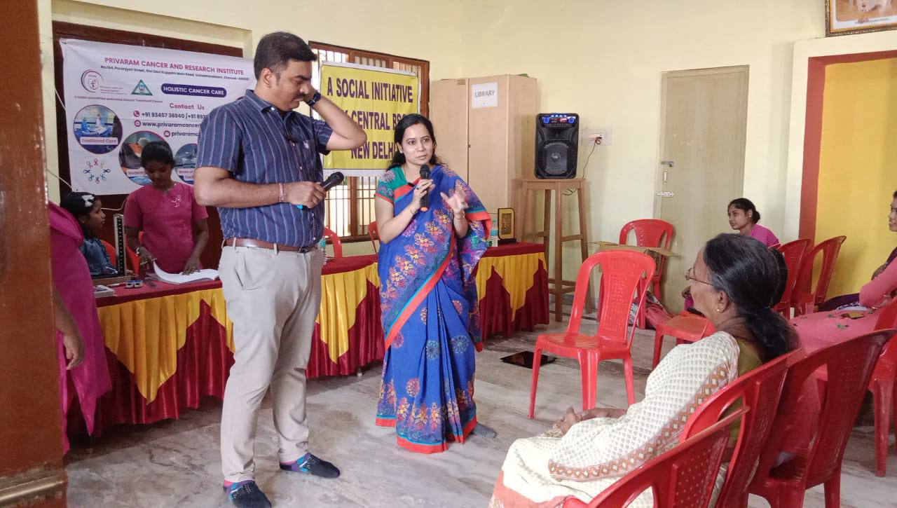 An empowering day dedicated to raising breast cancer awareness, the event organized by Kalpavriksham Trust & Netaji Youth Common Welfare Association at Sri Ramakrishna Ashram, Kumpinipet, brought the community together for Project Shakti. Dr. M. Banupriya and Dr. L. Manikandan delivered an insightful Cancer and Health Awareness Talk, enlightening attendees. The Privaram Cancer and Research Institute team conducted essential health check-ups, including Pulse Check, BP Check, and Breast Examinations, contributing to overall well-being.