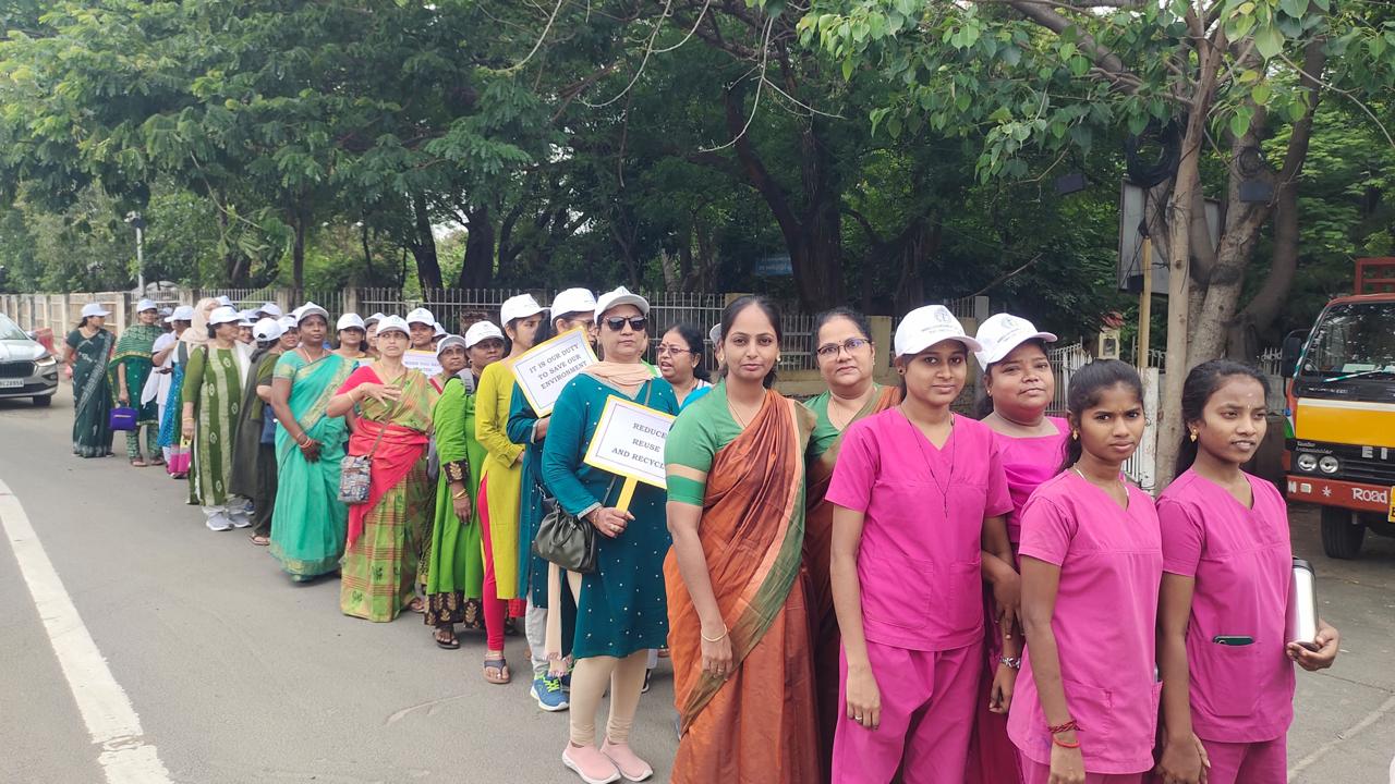 On World Environment Day, a collaborative Walkathon was organized by the Women's Indian Association (WIA), Women Doctors Association (WDA), Kalpavriksham Trust, and the staff of Privaram Cancer Hospital, under the theme "Our Land, Our Future" and "Prompte Zero Land Fill". The event featured a variety of activities including sapling planting, an online essay competition, waste collection drives, and an engaging awareness stage program. Participants walked to promote environmental consciousness and took part in these initiatives to underscore the importance of preserving our planet for future generations.