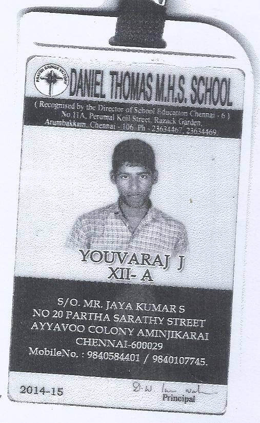 Purpose of Donation: Towards his School Educational Expenses. His term fees donated to Daniel Thomas Matric Hr. Sec. School near Arumbakkam at school premises.